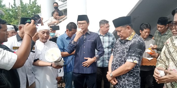 Wakil ketua 1 DPRD Oku Yudi Purna Nugraha SH dalam mendukung Aliansi masyarakat Oku bela palestina dihalaman DPRD Oku
