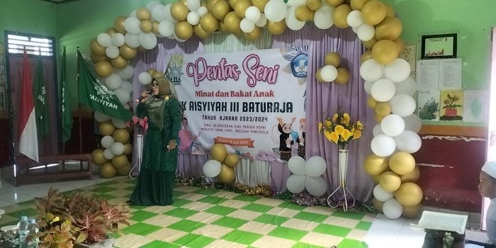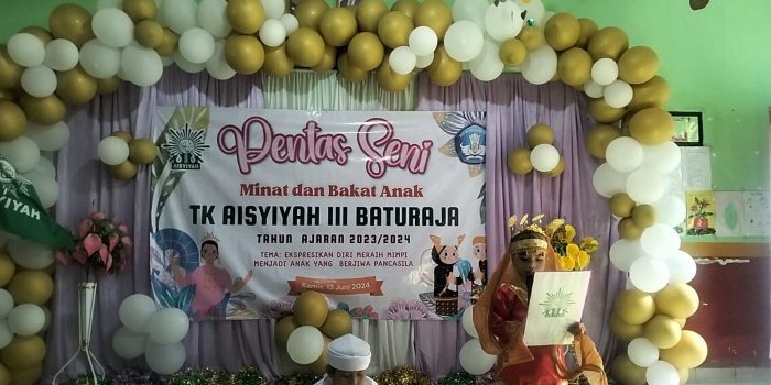 Baturaja baranusantara com.Kamis 13 juni 2024 // TK AISYIYAH III Baturaja jalan pustaka Kemiling Desa Tanjung baru kecamatan Baturaja timur kabupaten oku Mengadakan Acara Pentas Seni. Minat dan Bakat Anak, Dengan tema EKSPRESI Diri Meraih mimpi Menjadi Anak yang Berjiwa Pancasila