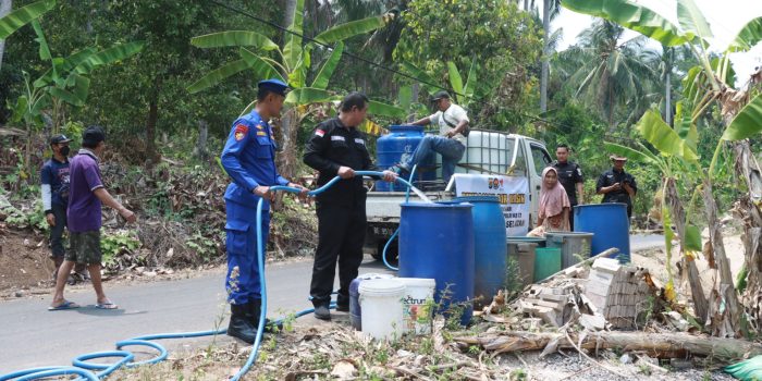 Baranusantara.com, Lampung Selatan – Warga Dusun Kayu Tabu, Desa Kelawi Kecamatan Bakauheni, Kabupaten Lampung Selatan, (Lamsel), mendapatkan pasokan air bersih dari Polres Lampung Selatan. Senin,(02/10/2023).