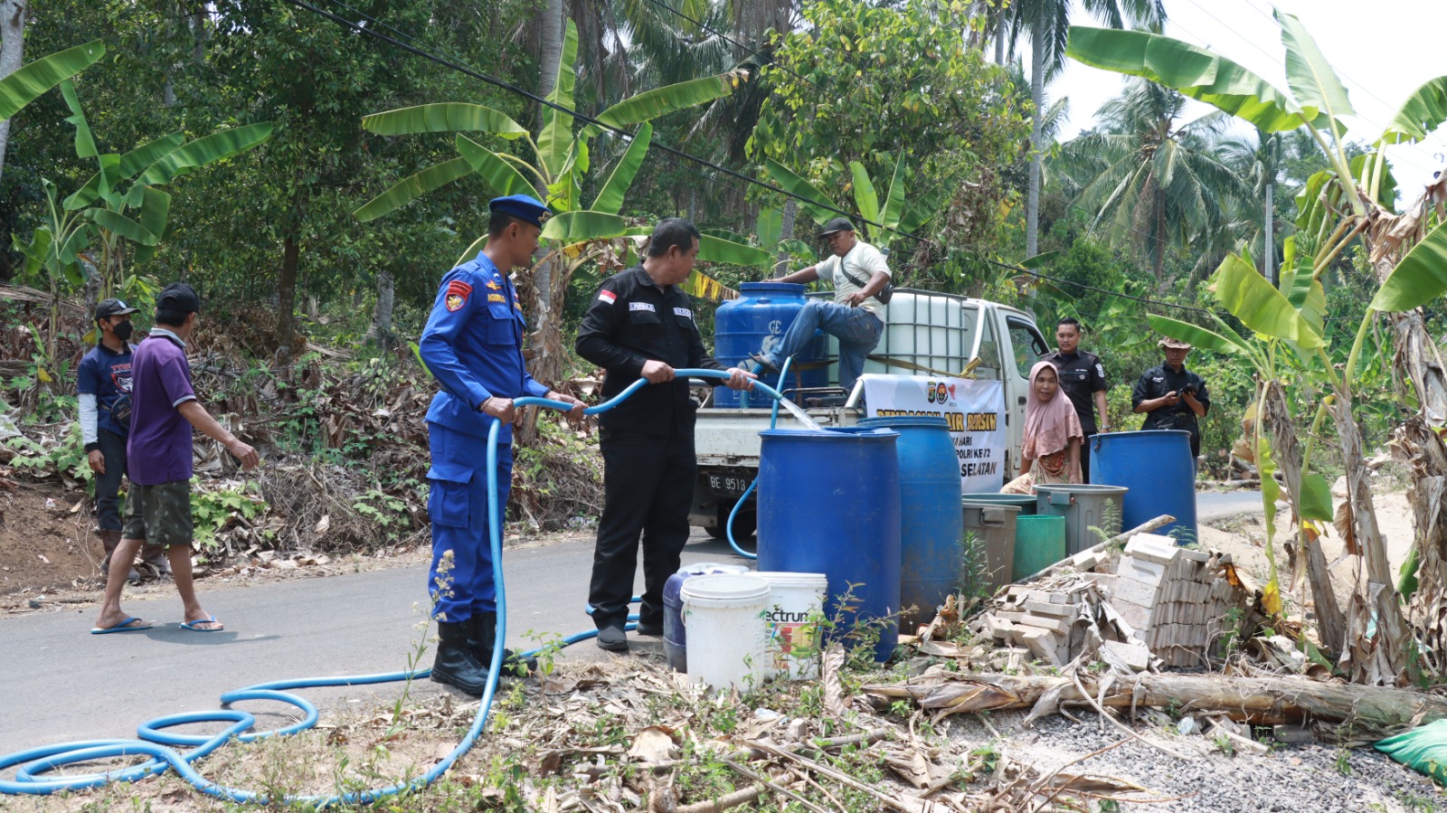 Polres Lampung Selatan melaksanakan berbagi air bersih untuk warga Dusun Kayu Tabu sebanyak dua ribu (2.000) liter air bersih. Selain berbagi air bersih untuk warga, dibagikan satu tandon air bersih ke tandon penampungan air di mushola untuk keperluan wudhu.